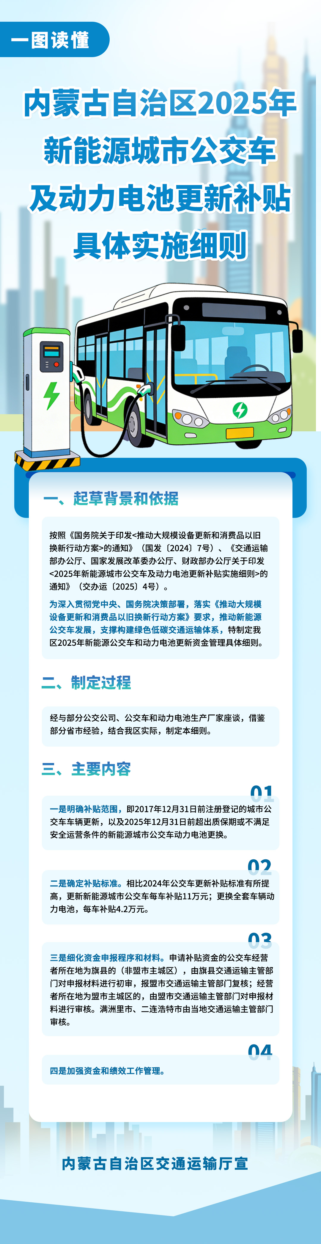 【图解】《内蒙古自治区2025年新能源城市公交车及动力电池更新补贴具体实施细则》